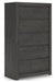 Find serene simplicity in the clean lines and dark neutral tones of this chest of drawers. It’s a sincere approach to modern elegance, giving you high style at a great value. A sleek hardware-less design creates a fuss-free look. Short on storage? This chest's smooth-gliding drawers keep clothes and clutter neatly tucked away.
